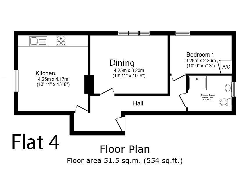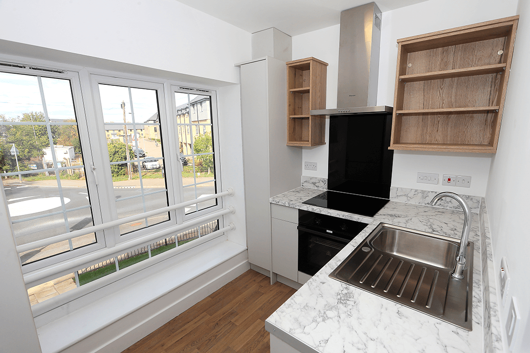 This former pub has been converted into four one-bedroom flats, each with its own character. The conversion makes the most of the building’s original features and structure, so every flat feels different.